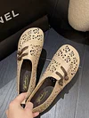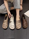 أحذية بكعب منخفض بلون واحد مجوف على شكل زهرة بإبزيم