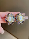 اكسسوارات أقراط بيضاوية مطرزة بحجر الراين