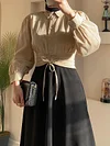 | ميزة | خصر برباط , زر , لون نقي |